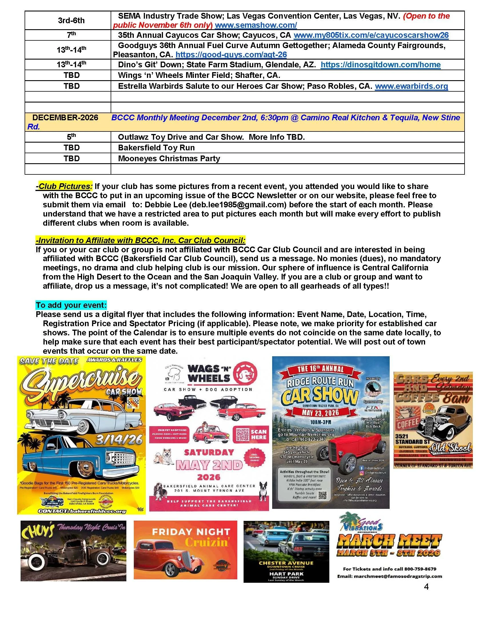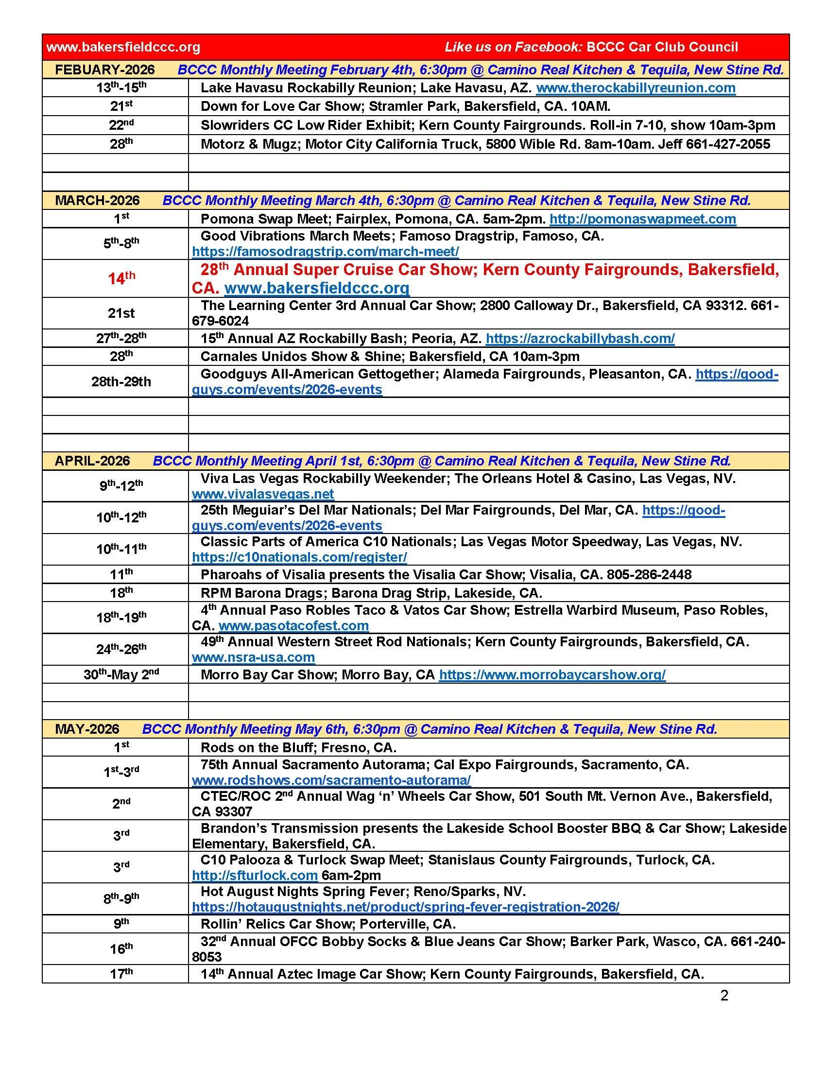 The event will take place at the Wasco Elks Lodge, 16694 Wasco Ave., from 10 a.m. to 4 p.m. For more information on car show registration or sponsorship opportunities, call Bozarth at 661-747-8831.