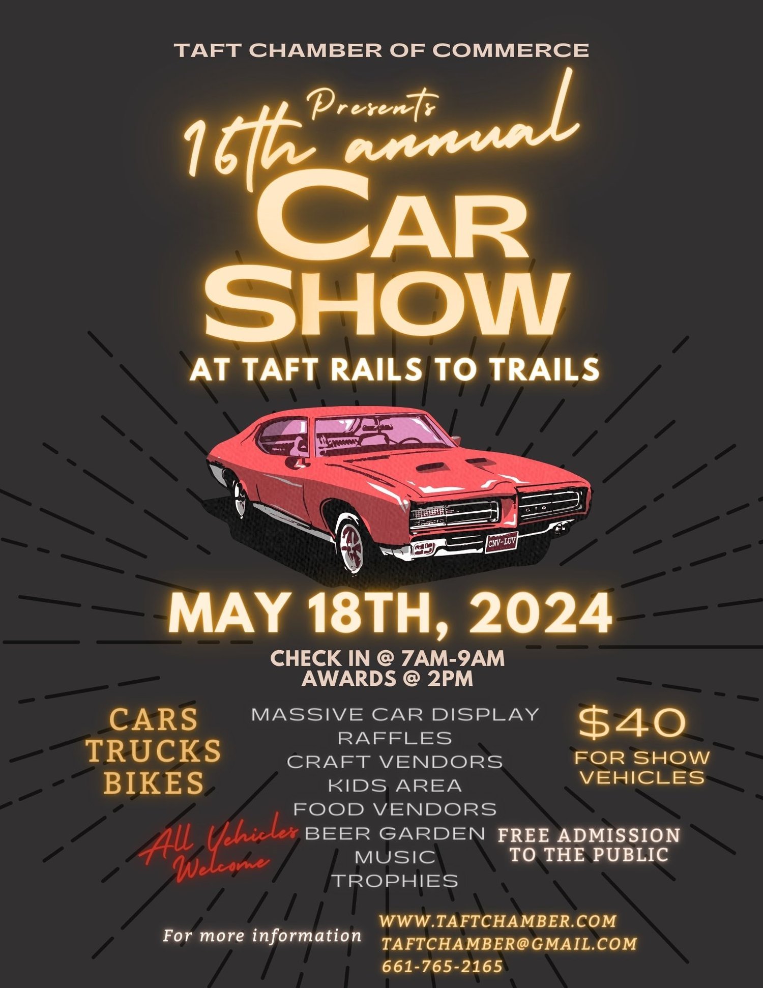 16th Annual Taft Chamber of Commerce Rails to Trails Car Show